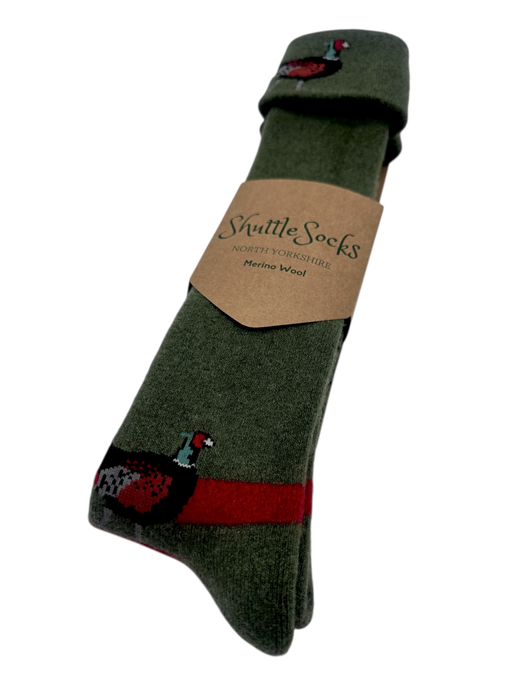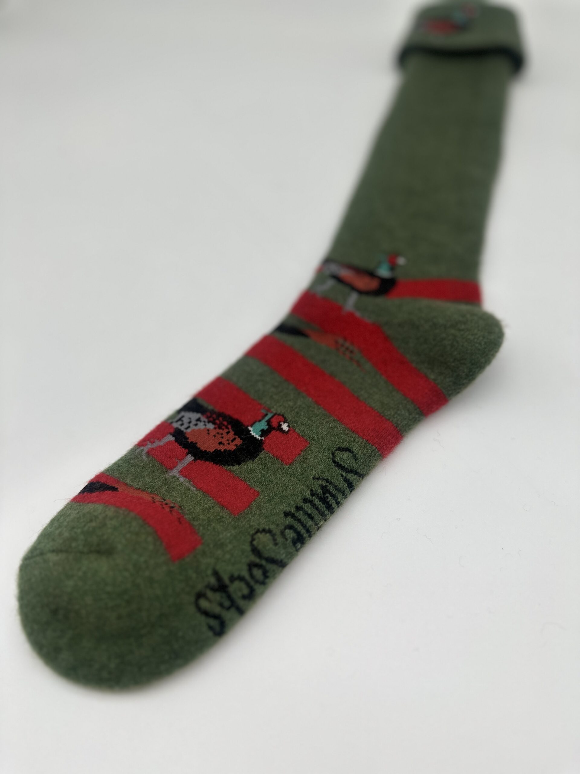 Merino Wool Green & Red Pheasant Shooting / Walking Socks